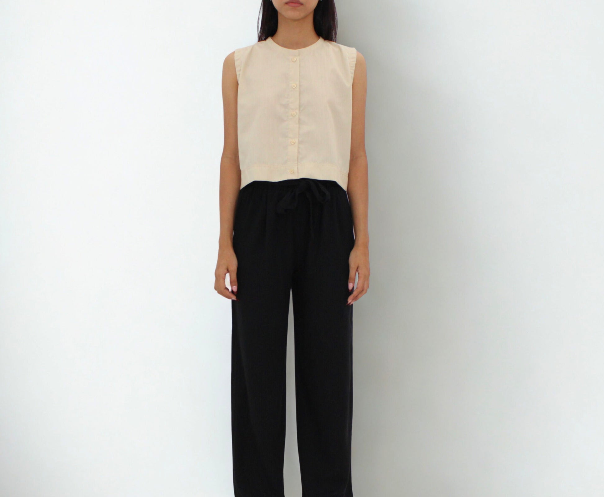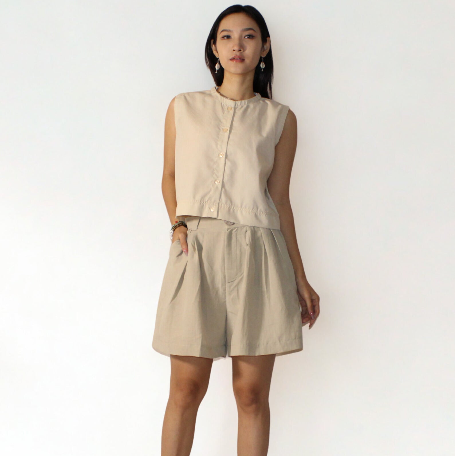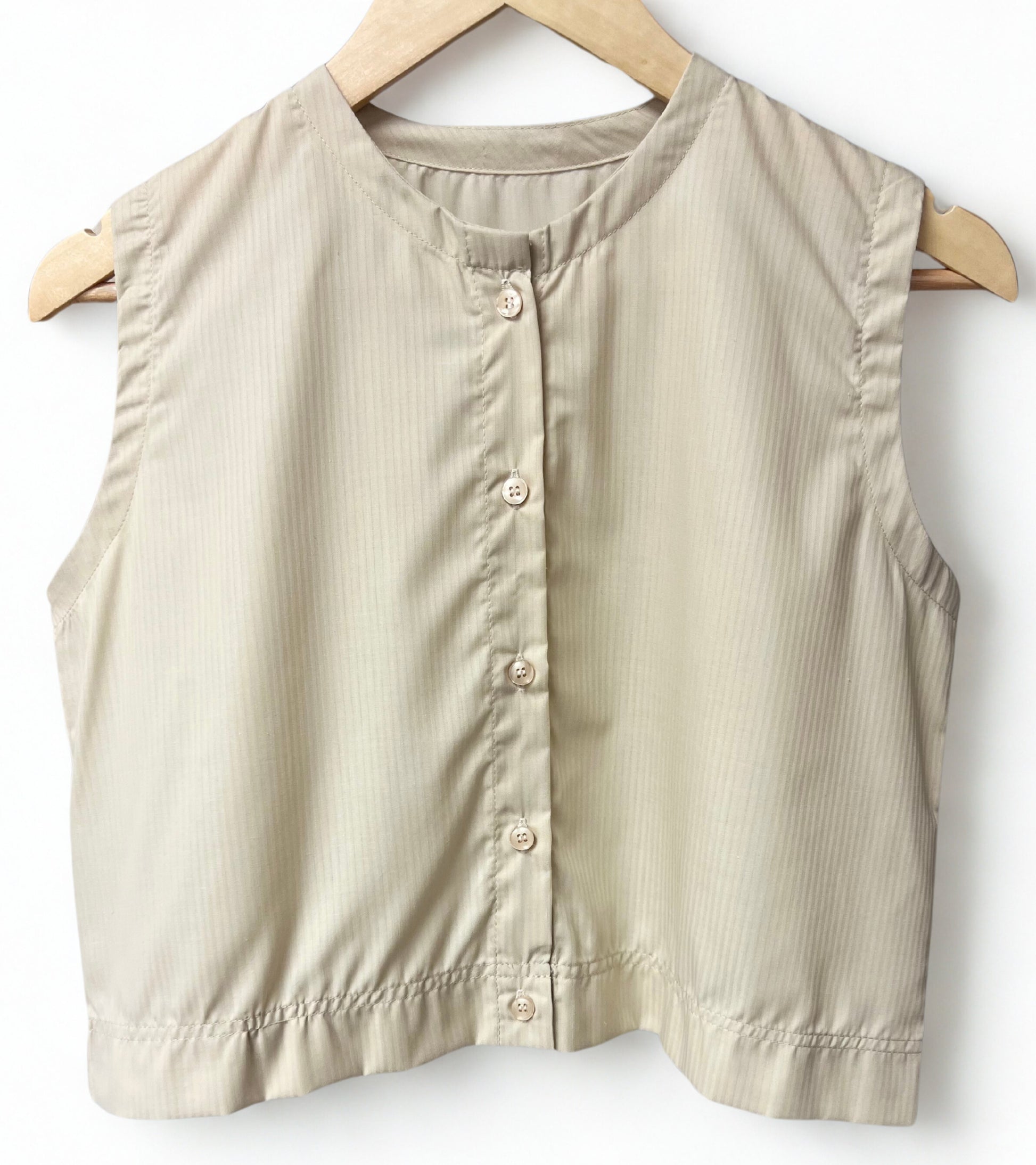 A breathable and lightweight crop top made from 100% cotton, Elira blends minimal design with subtle structure. Finished with delicate vertical stripes and a full button front, it’s a timeless staple for effortless layering or sunny solo days.