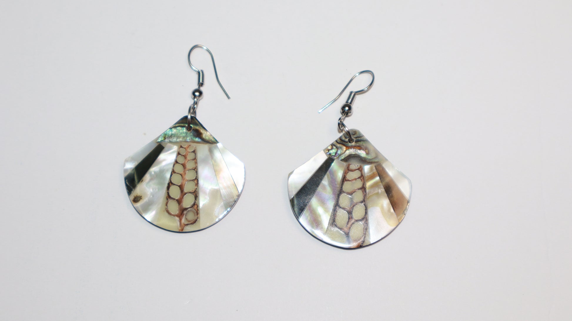 Handcrafted with real abalone shell and natural materials, the Seabreeze Fan Earrings shimmer with iridescent layers and intricate cut-shell detailing. Lightweight yet bold, they're perfect for ocean lovers and boho souls alike.