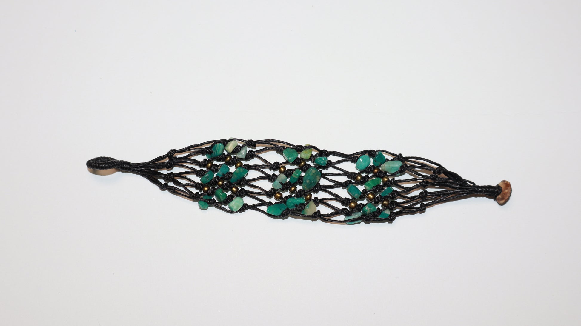A bold yet earthy statement, the Verdant Weave Stone Cuff Bracelet features natural green stones hand-knotted into a unique netted design. This handmade piece adds depth and character to any outfit — perfect for boho, eco-conscious, and artsy styles. Lightweight and adjustable with a loop closure.